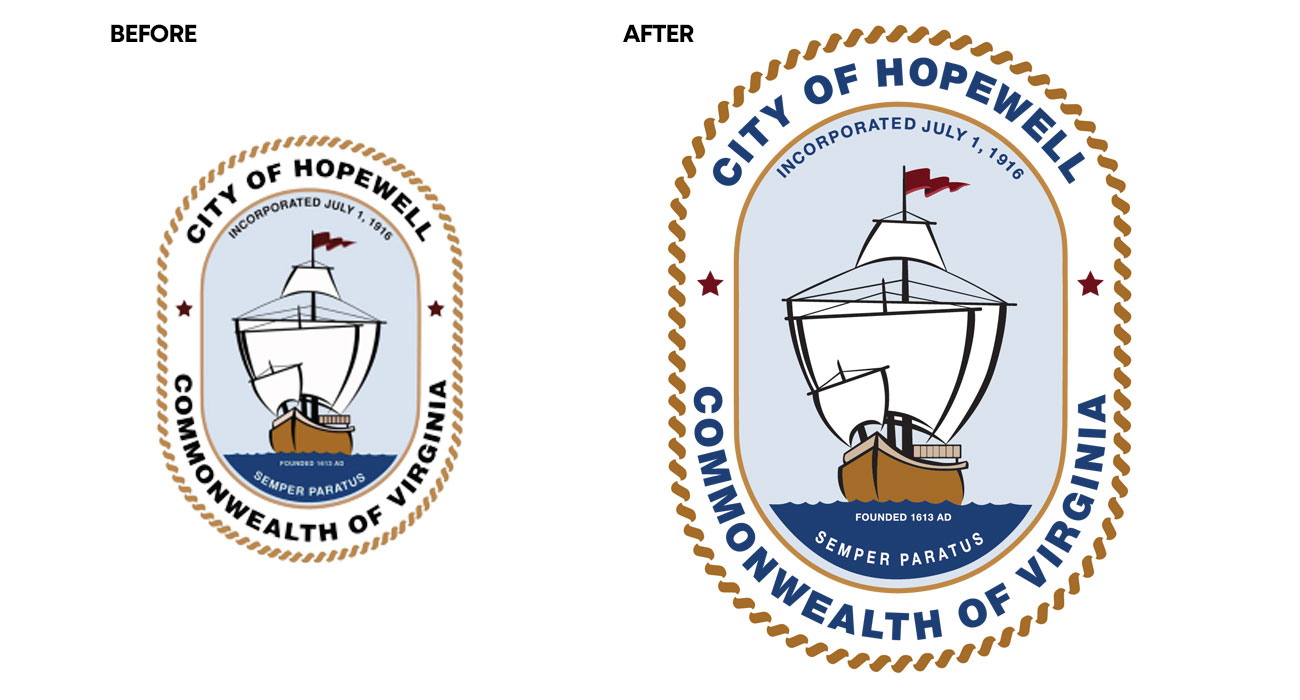 As the agency of record, engaged to lead a full rebranding initiative for the City of Hopewell to revitalize the city’s public-facing image and create unified design standards to strengthen messaging and communication across departments and platforms. Our work included redesigning the city logo, formalizing official color palettes and typography, and delivering a comprehensive brand guideline to ensure consistency across print, web, signage, and digital marketing.