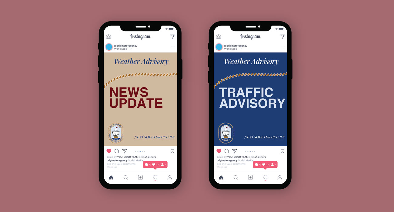 To support everyday communications, we designed a ready-to-use Social Media Toolkit for Hopewell’s staff, including editable templates for announcements, events, alerts, and milestones. These tools allowed the city to confidently deliver polished communications across Facebook, Instagram, Twitter/X, and newsletters.